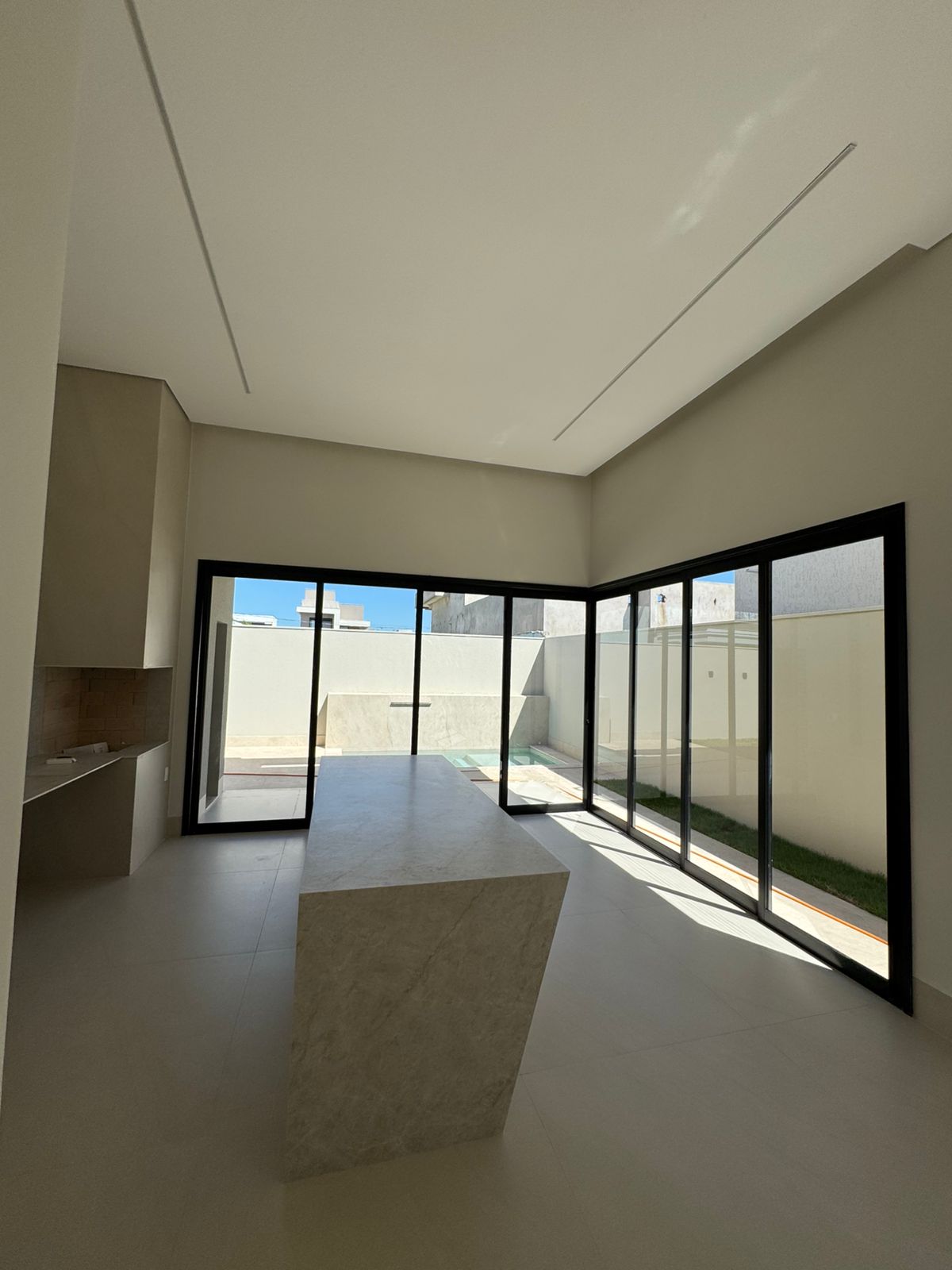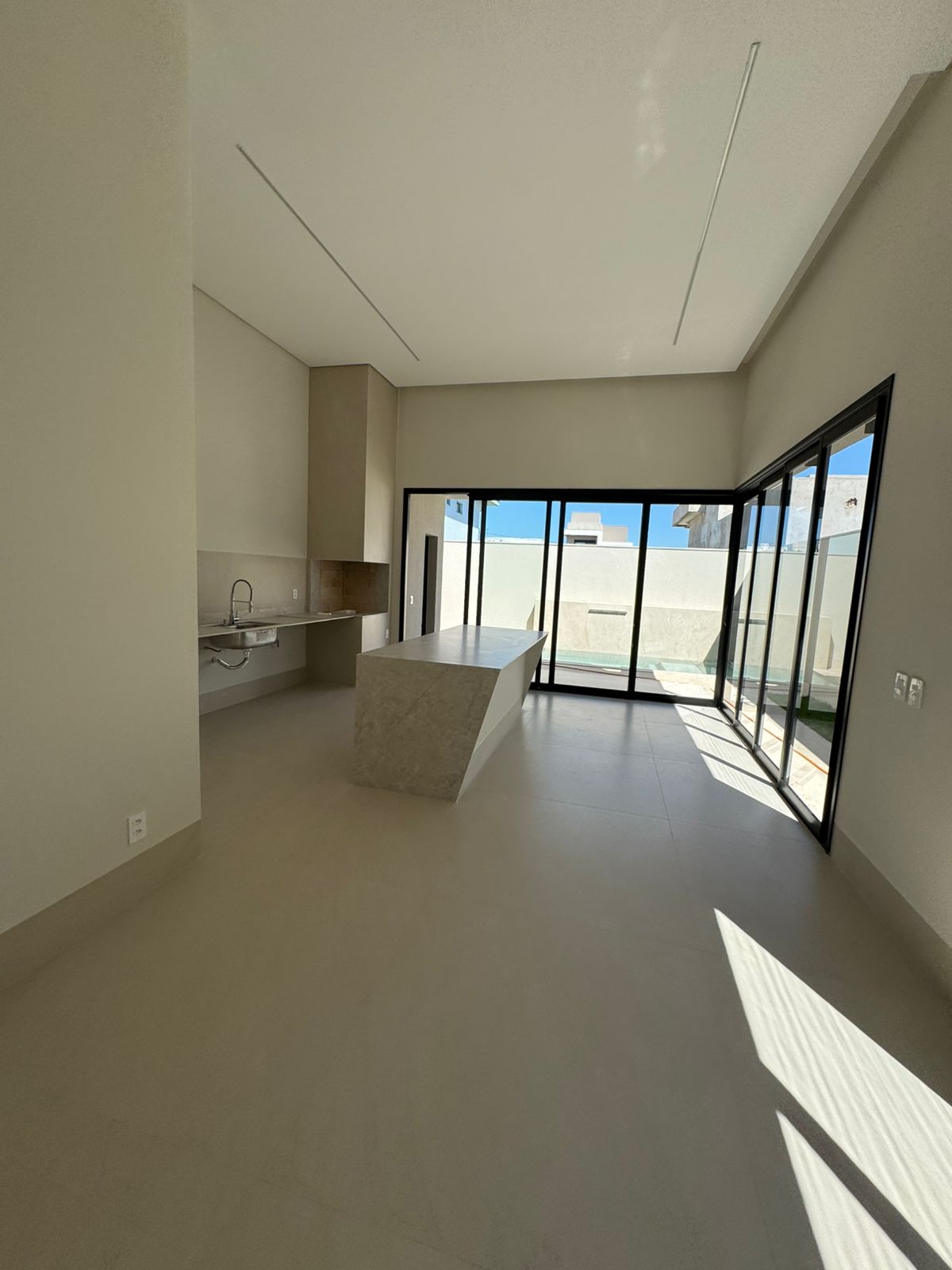 Cozinha integrada com ampla área gourmet com churrasqueira, toda no pé direito duplo