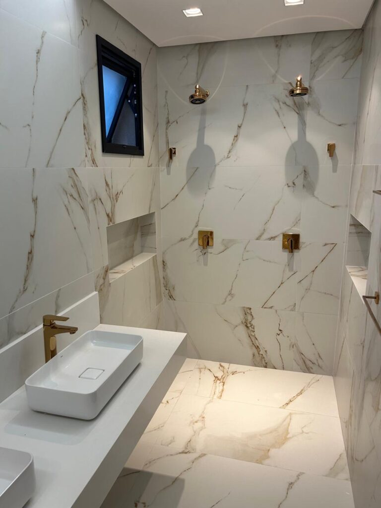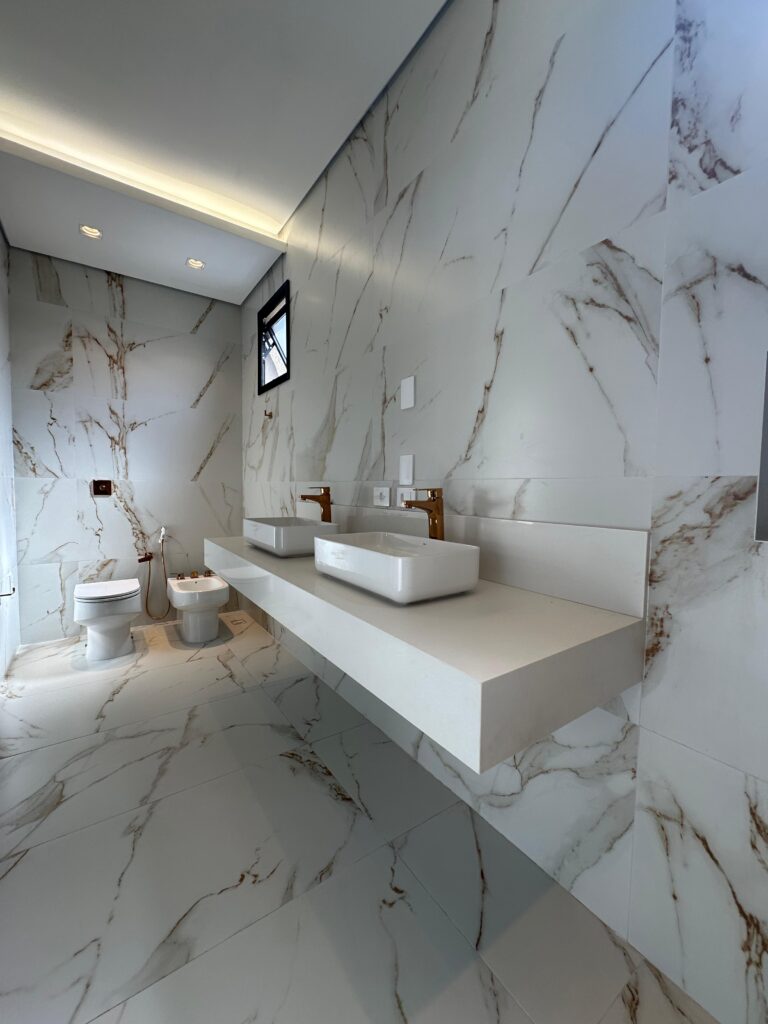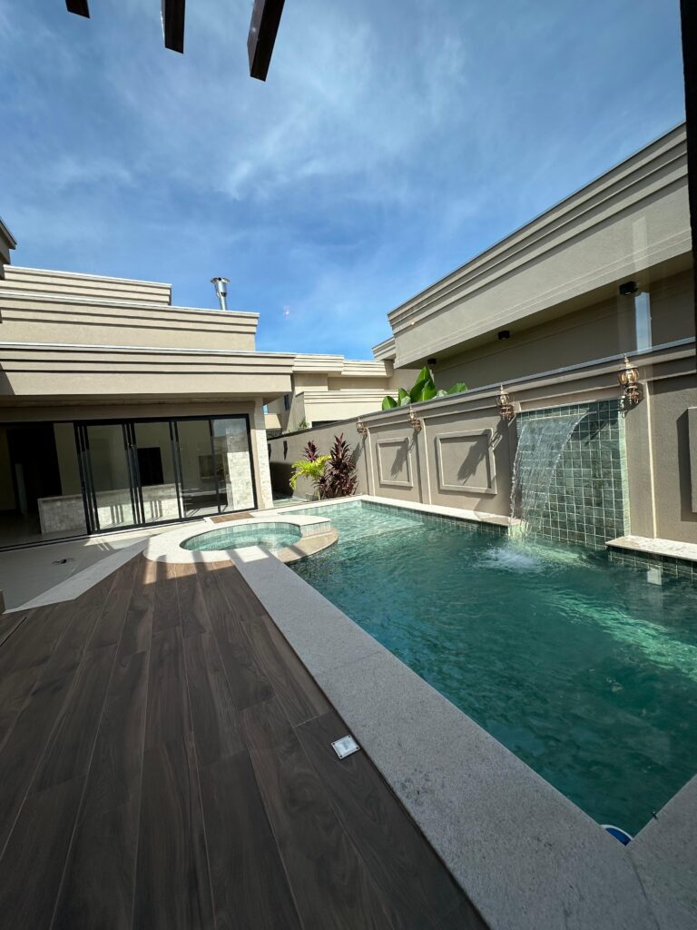 Residência sofisticada com design neoclássico e acabamento de altíssimo padrão, localizada em condomínio completo e valorizado.