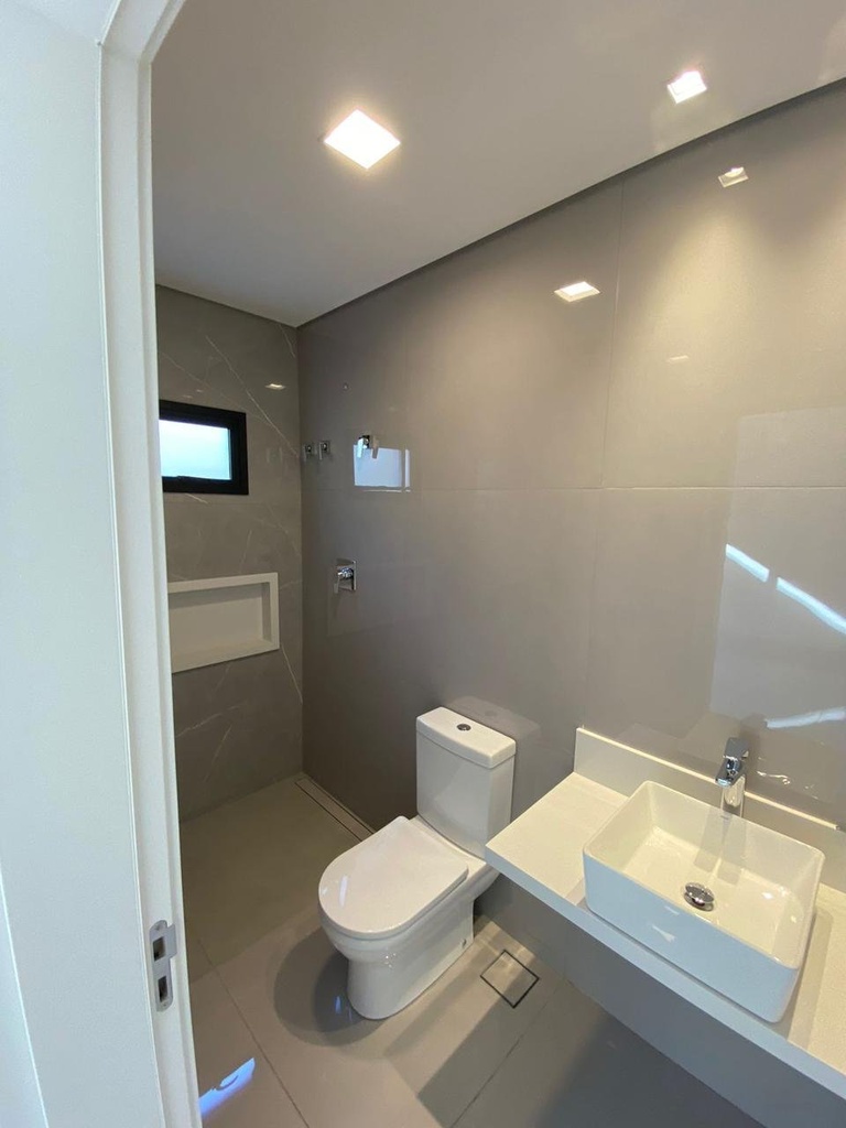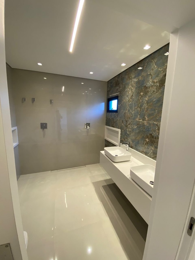 Acabamentos premium incluem porcelanato 1,20x1,20, esquadrias de alumínio preto, portas laqueadas e paredes externas com grafiatto. Água quente em todos os ambientes, fechadura eletrônica e garagem para 4 carros completam a funcionalidade e sofisticação desse imóvel único.