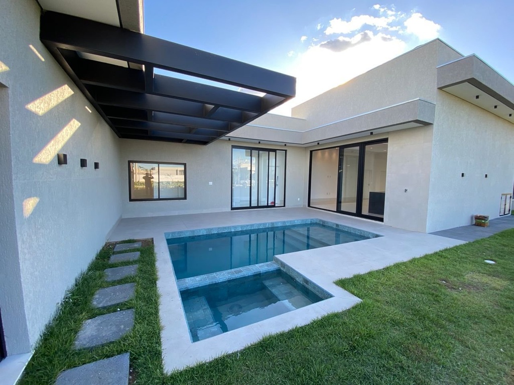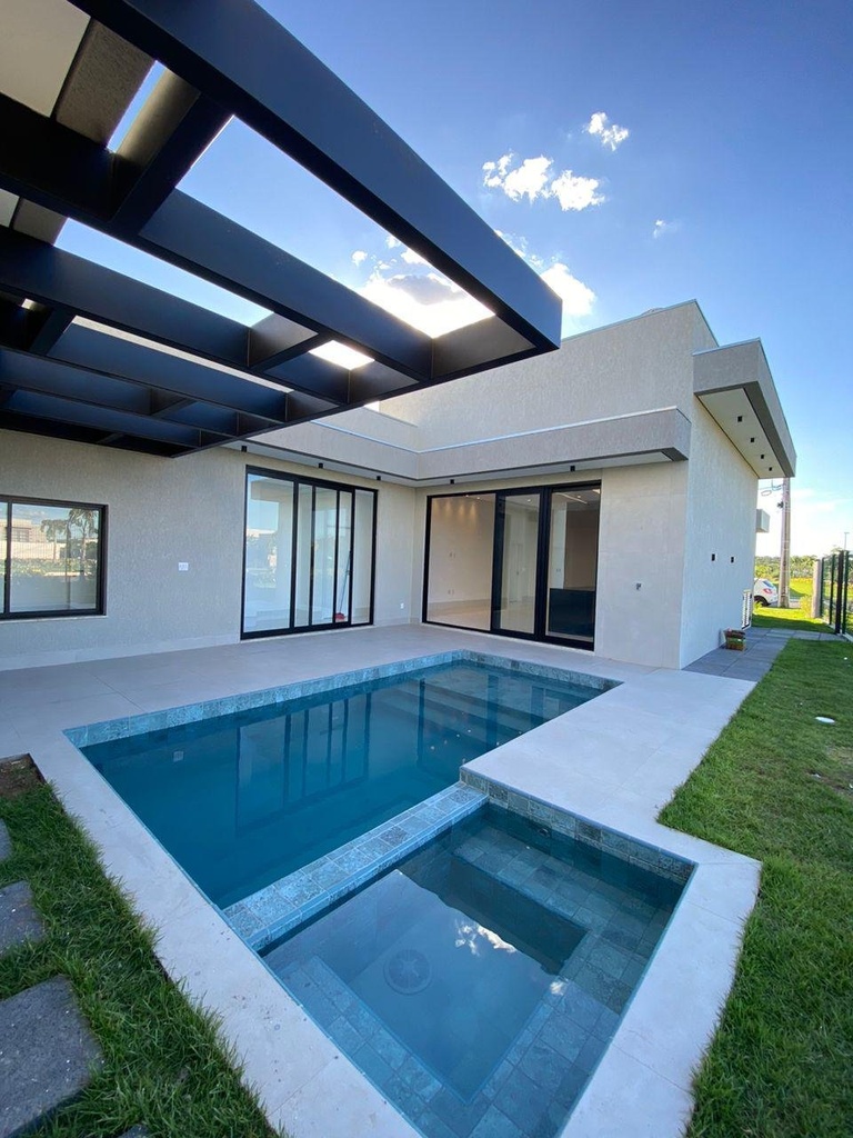Casa térrea no condomínio Florais do Vale, situada em um terreno de esquina com 465,27 m² na parte alta, oferecendo localização privilegiada. Com 237,45 m² de área construída, destaca-se pela sala com pé direito duplo, 3 suítes (2 com closet), escritório e espaços integrados de cozinha, gourmet e churrasqueira. A piscina com spa e cascata, iluminação em LED e pergolado são diferenciais de lazer e conforto.