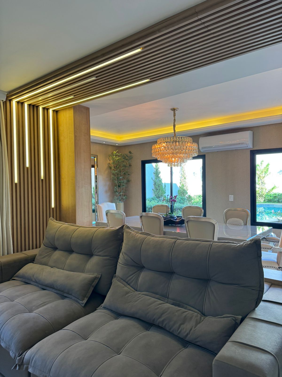 • Cortinas sob medida, luminárias sofisticadas e móveis planejados