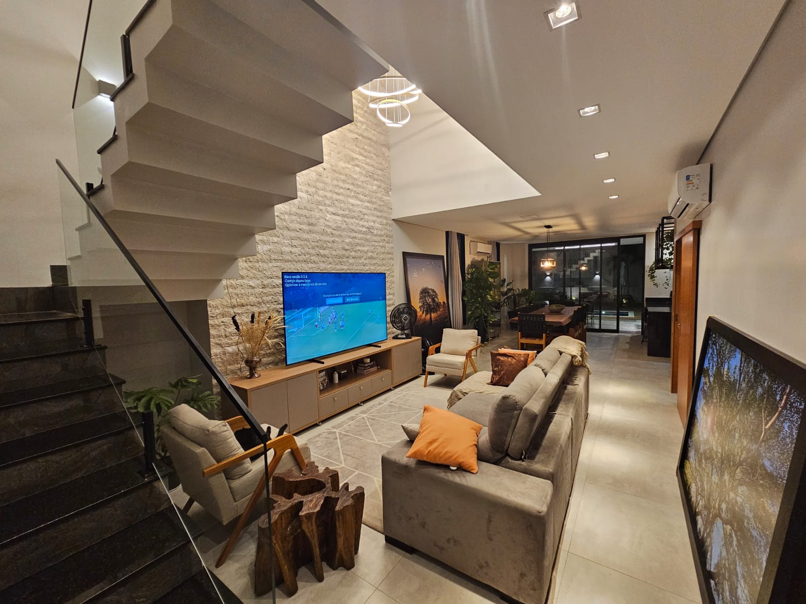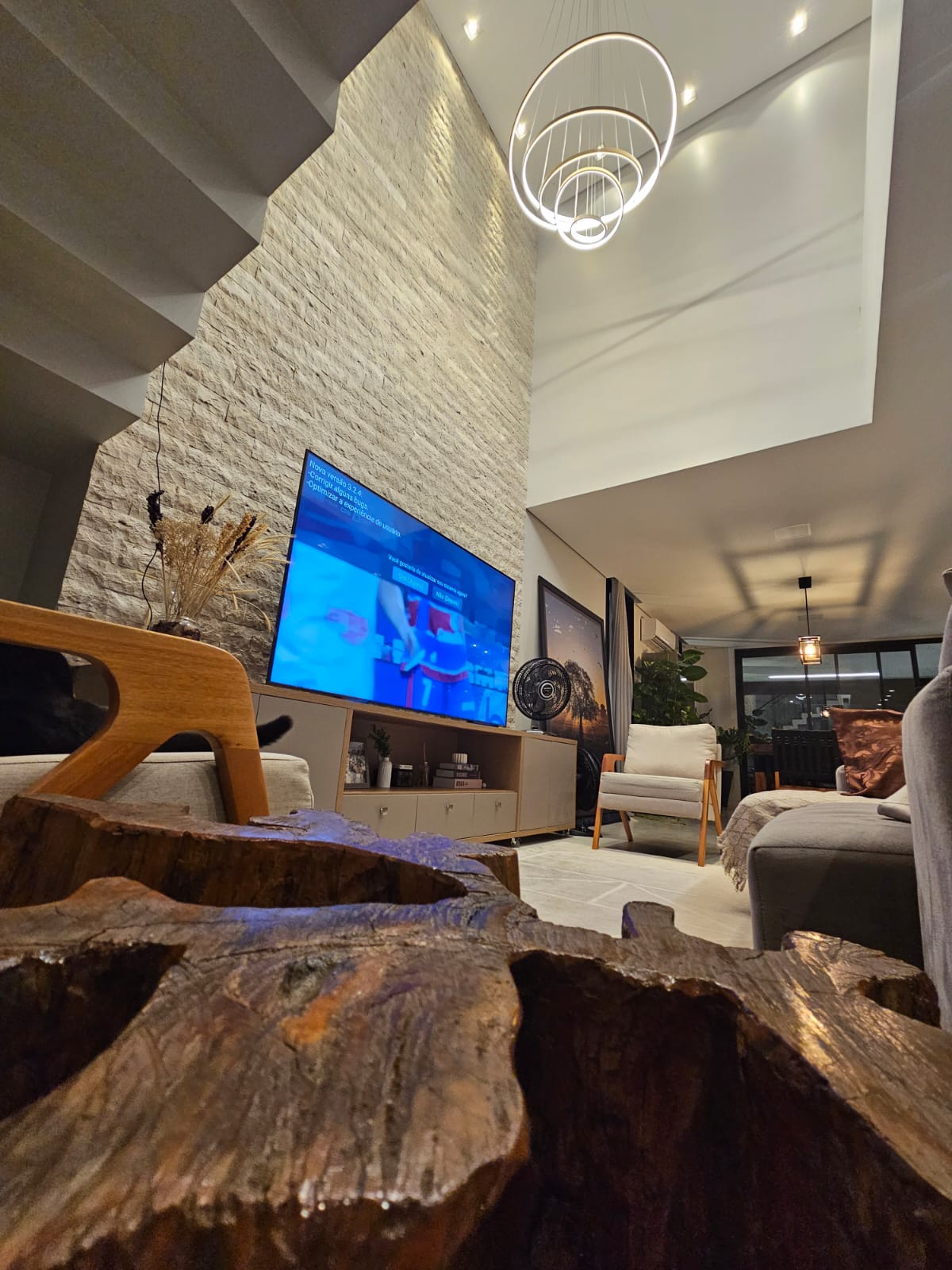 • Sala de estar com pé direito duplo.