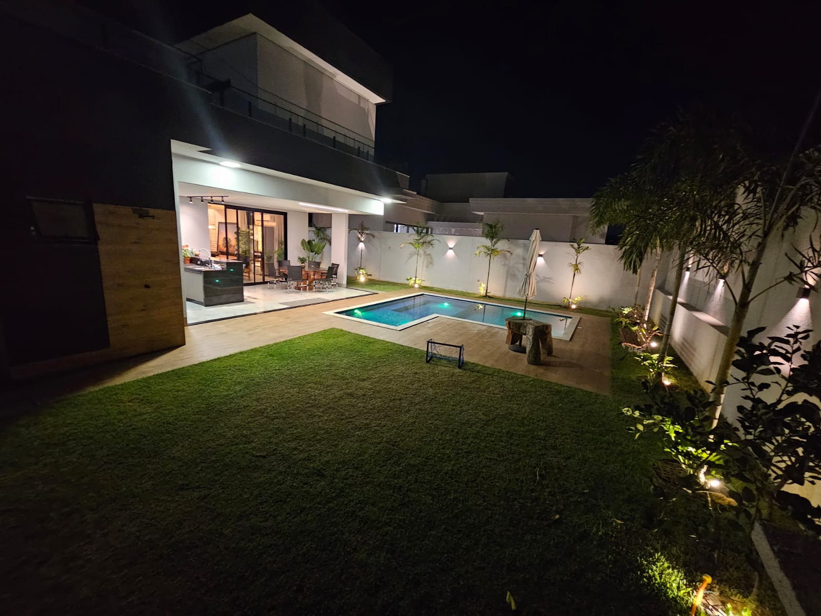 • Jardim amplo na frente, laterais e fundos, com mini campo de futebol.