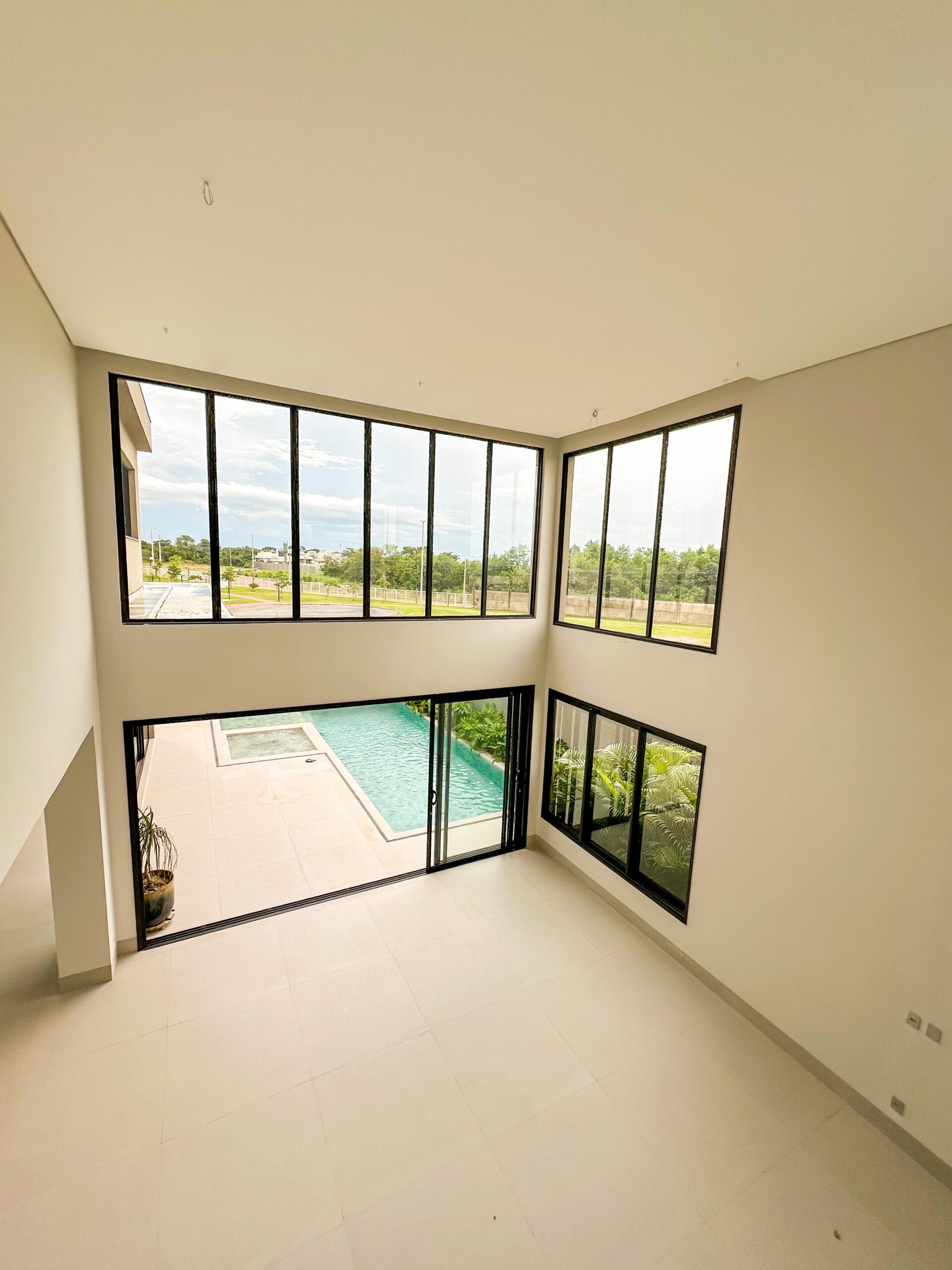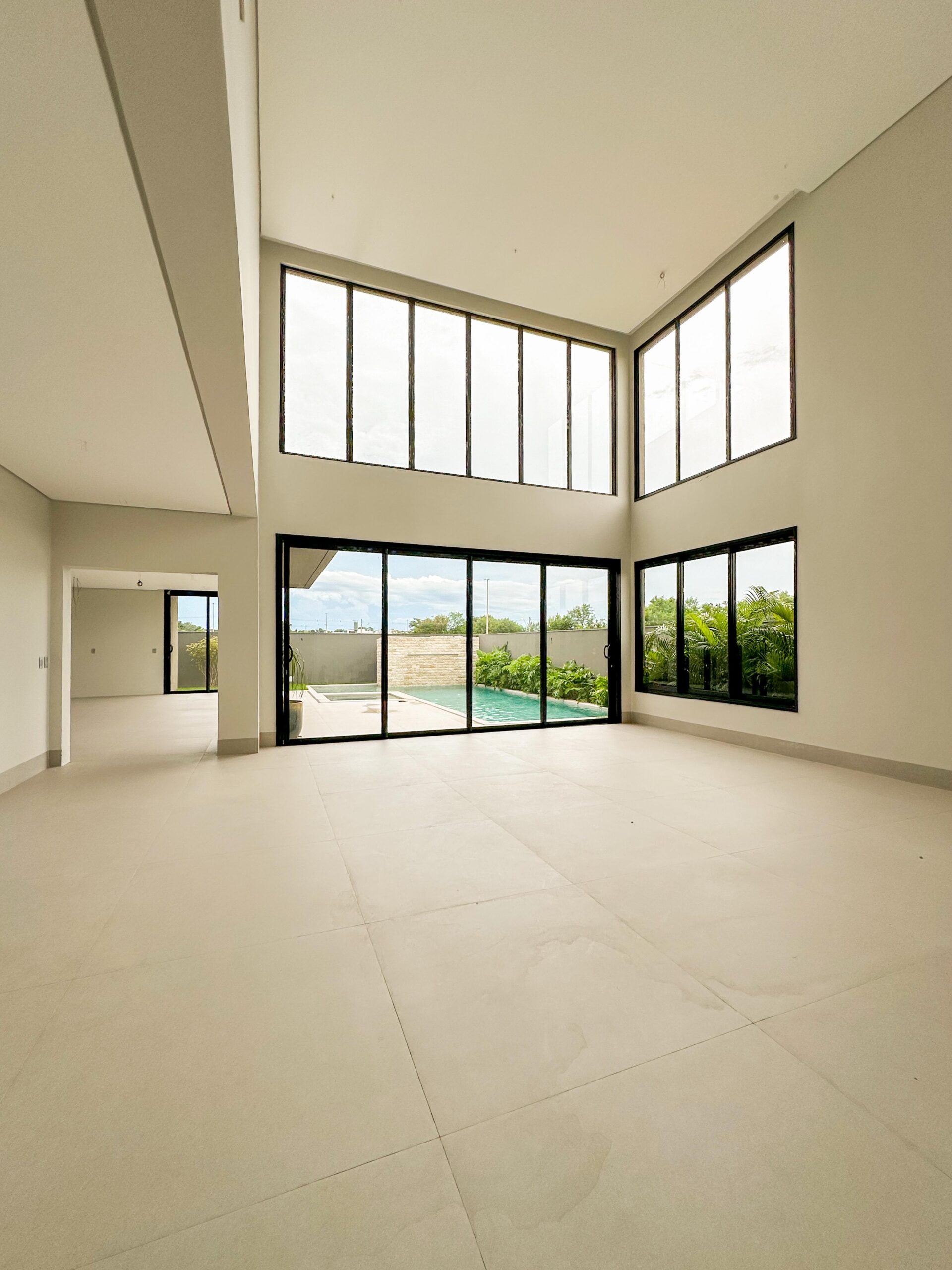 Sala com dois ambientes e pé direito duplo