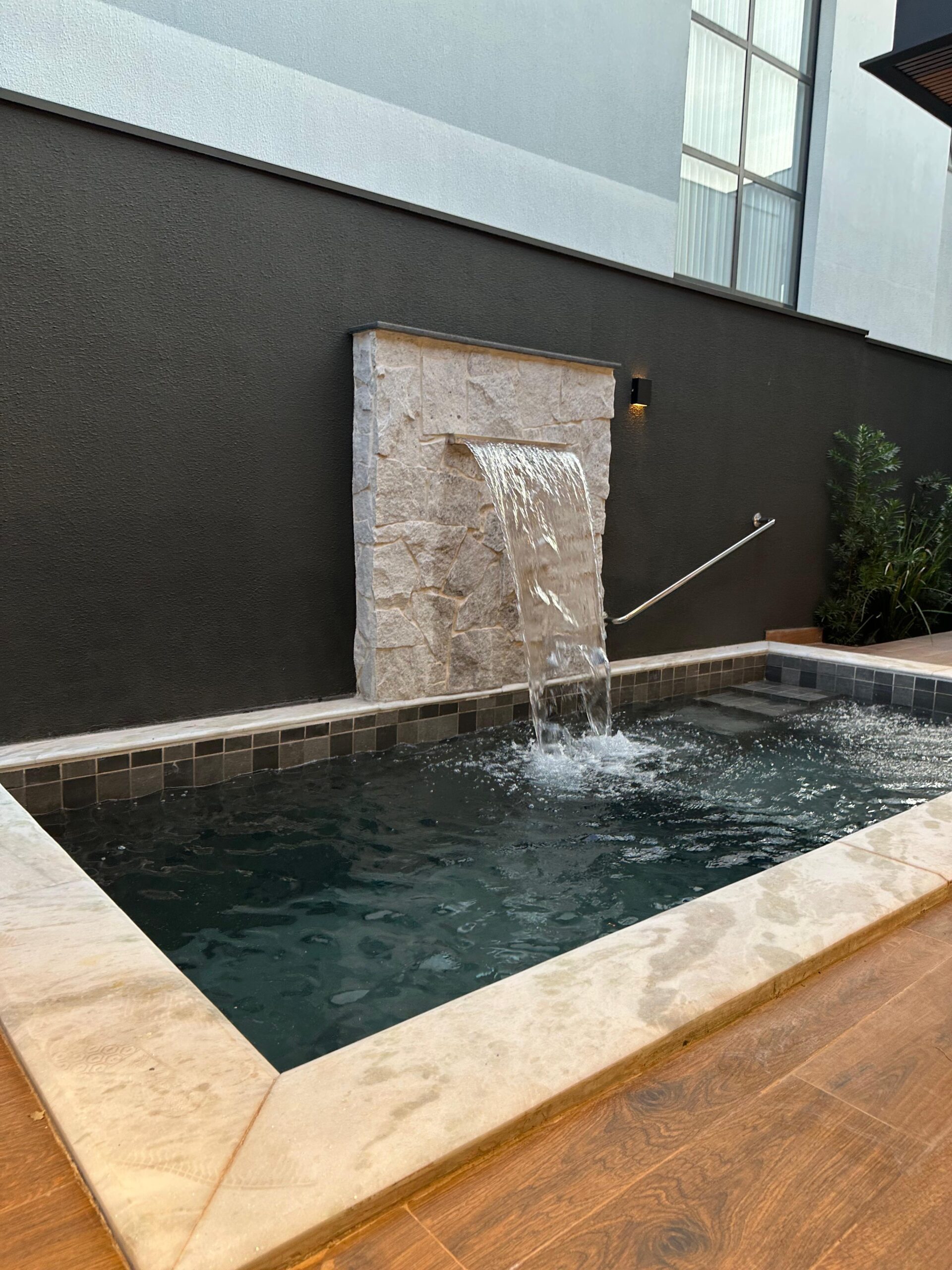 Piscina com LED, cascata, aquecimento e casa de máquinas completa